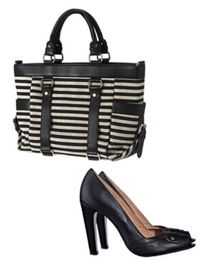 Tendance marinière, quand tu nous tiens ! Pour être chic et tendance en toute circonstance, on affiche les rayures avec ce sac signé 1.2.3. Comble du raffinement, ces escarpins de Longchamp confèrent une touche d'élégance en plus à notre look. La classe.