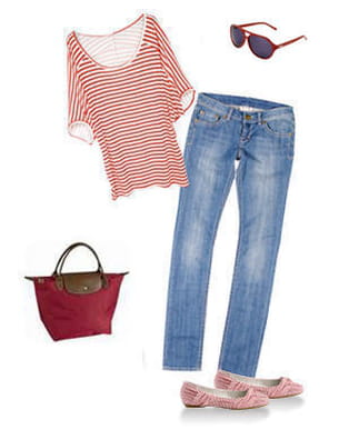 Rien de plus sympathique que ces petits moments entre filles pour raconter les derniers potins et parler de mode aussi ! Du coup, on sort les vêtements tendance tout comme la marinière que l'on choisit en rouge et blanc pour changer, et portée un peu loose sur un jean clair. Il nous faut donc des accessoires rouges : un petit sac porté main, une paire de ballerines rayées pile comme il faut et des solaires mode, pour se protéger des rayons du soleil en terrasse et faire la belle aussi accessoirement !
