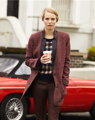 Veste bordeaux, pull à carreaux et pantalon de New Look © SdP New Look