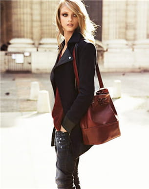 • Prix : 149,99 euros le manteau, 49,99 euros le pull, 34,99 euros le jean et 49,99 euros le sac