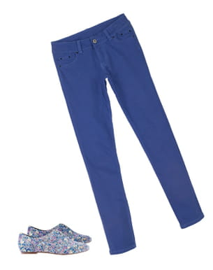 Pour un look printanier qui célèbre le retour des beaux jours un peu en avance, ces jolies teintes de bleus sont piles dans la tendance ! Ce jean uni de Tissaia révèle toute la beauté des motifs Liberty des derbies de Monoprix. Le marron clair qui habille les petites chaussures permet de faire ressortir les motifs fleuris avec élégance. Une bouffée d'oxygène qui fait du bien !