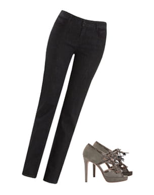 Une soirée de prévue ? Pas de panique, voici l'ensemble qu'il vous faut ! Un jean ultra slim pour affiner la silhouette et foncé pour l'élégance, rehaussé de ces sandales couture façon python et au talon vertigineux. Un régal pour les yeux et quel style !