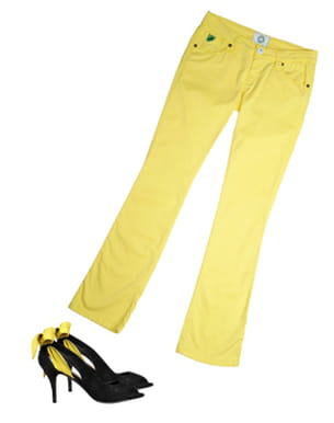 Jean jaune de Loïs et escarpins "Liane" d'André © Journal des Femmes