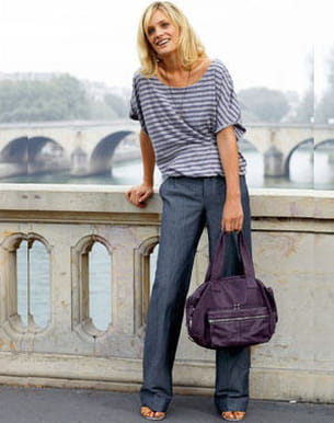Pour rester classe en toute circonstance, pourquoi ne pas miser sur un pantalon léger et agréable à porter en lin et coton ? Avec sa coupe masculine, il joue la carte de l'élégance discrète. Vous pourrez l'associer avec une veste de tailleur ou tout simplement avec un joli haut tendance comme cette marinière.