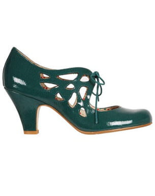 Les babies jouent la carte "art nouveau" avec du cuir ajouré chez André. En vernis vert à l'extérieur et aux motifs dans l'esprit Liberty à l'intérieur, ils se nouent sur le devant avec un lacet ton sur ton. Le côté rétro de ces escarpins est un must pour celles qui veulent de l'originalité. Collection printemps-été 2011