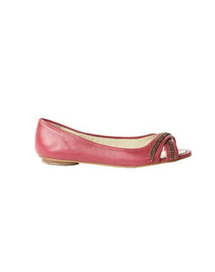 Comment être rock et girly à la fois ? Petite Mendigote a concocté pour vous la parfaite petite paire de ballerines à dégaîner en toutes occasions. D'un joli rose, ces ballerines s'ouvrent sur le bout du pied en deux lanières entrecroisées et surtout cloutées ! Collection printemps-été 2011