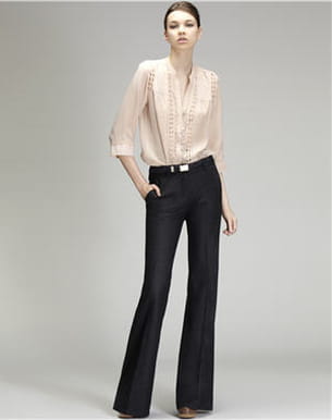 On retrouve bien là toute l'élégance de la marque Gérard Darel dont on ne se lasse plus saison après saison. Pour cette rentrée, on opte pour un joli pantalon taille haute comme ce modèle qui nous affine les gambettes. Porté avec cette blouse ajourée tendance nude, c'est la classe assurée.