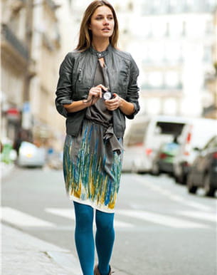 Voilà de quoi apporter du peps à notre dressing hivernal ! Couleurs fraîches, soie douce, col bénitier chic et ceinture à nouer : cette robe de Soft Grey chez La Redoute a tout pour nous combler. Et pour toujours plus de style, on sort le petit blouson en cuir comme ce modèle bronze aspect vieilli et on ose le collant ou le legging flashy.