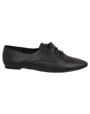Les derby continuent de mener la tendance. Cette version prend des airs rock'n roll avec un bout pointu et clouté. Pour le confort et le style, ce modèle très plat se portera avec un slim, un short ou encore une petite robe. A vous de vous créer votre style !
