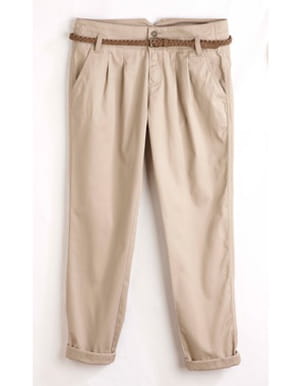 Cela fait deux saisons que le pantalon chino s'offre une jolie place dans notre garde-robe. En toile beige et avec ses bas retroussés, il se fait léger et agréable à porter à l'arrivée des beaux jours. Un vrai basique et un indispensable pour le printemps surtout à ce prix-là ! Collection printemps-été 2011