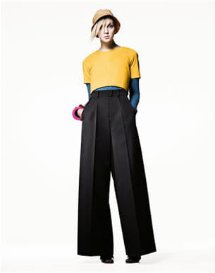 Un top jaune, couleur phare du moment, un pantalon en laine large et taille haute...  Voilà un look auquel les modeuses ne pourront pas résister cette année. Et il paraît que la superposition de vêtements est toujours au goût du jour... Adoptez tous ces codes de la mode 2009, ils vous resserviront à de multiples occasions !