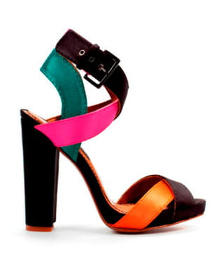 Look coloré ne rime pas forcément avec résultat clownesque. Ces escarpins de Zara se la jouent tons sur tons avec la tenue choisie. Les bandes rose, bleu turquoise et orange viennent rappeler respectivement la jupe, le haut et le sac. Le tout sur une base noire qui n'est pas sans faire écho à la sobriété du blazer. Un bon compromis pour un look travaillé et maîtrisé à dégainer sans hésiter vec le retour des beaux jours !