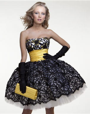 La robe parfaite pour les princesses des temps modernes ! En tulle et dentelle, ce modèle bustier et bouffant nous habille à merveille. La ceinture en satin de soie colorée serre la taille avec la plus grande élégance et fait même toute la différence. Tandis que la petite pochette assortie finit de sublimer l'ensemble. Avec elle, c'est nous la star ! Collection printemps-été 2011