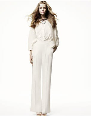 Pour un baptême ou une communion, pourquoi ne pas jouer le total look blanc ? On aime l'esprit de la blouse romantique qui vient adoucir le pantalon droit. Une tenue un peu rétro qui nous donnera tout de suite du style sans pour autant oser la robe.Collection printemps-été 2011