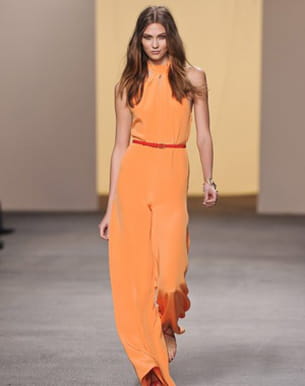 Cette jolie combinaison offre une alternative originale à la traditionnelle robe. Ce modèle très tendance cette saison affiche une jolie couleur abricot des plus vitaminées. De quoi nous habiller avec élégance et couleur et faire honneur à la belle saison. Collection printemps-été 2011