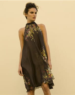 Marre des manches classiques et de la coupe bustier un peu trop incontournable en matière de cérémonie ? Devernois propose une alternative et nous séduit avec une robe aux emmanchures américaines top tendance ! Toute en mousseline marron, la tenue se pare d’imprimés floraux jaune et fuchsia résolument printaniers et à la pointe de la mode.   Collection printemps-été 2011