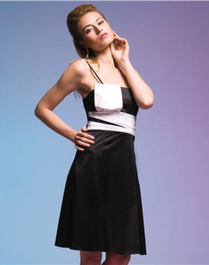 Lola Cocktail parvient à mixer sobriété, avec la robe noire à la coupe classique, et originalité grâce au tissu blanc qui vient ceinturer la taille et remonte sur l'un des côtés de la robe. Quand simplicité rime avec élégance ! Collection printemps-été 2011