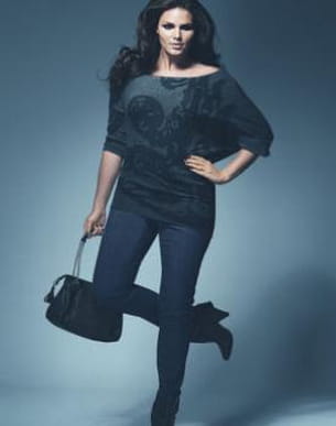 49,90 euros le pull (du 38 au 58), 32,90 euros le legging denim (du 38 au 58), 49,90 euros le sac