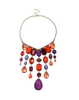 On le voit sur les podiums, dans la rue ou en soirée, l'heure est aux bijoux imposants, aux colliers voyants, tout comme ce majestueux modèle plastron de New Look. Rouge, orange, violet... Avec ses ravissantes couleurs et cette véritable pluie de brillants, il mettra aussi bien en valeur votre décolleté que votre tenue.