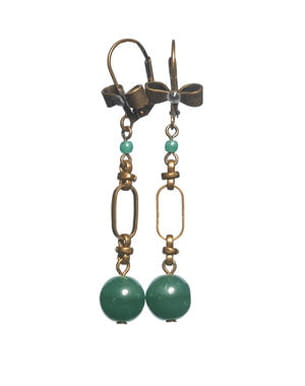 Les nœuds, encore et toujours. Très romantiques, ces décors apportent une note de douceur et de fantaisie à cette paire de boucle d'oreilles en laiton vieilli. Rehaussé de perles de verre colorées, ce modèle signé Sous le sable sera du plus grand effet pour illuminer votre joli minois.