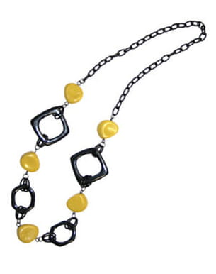 Au cas où vous ne le saviez pas encore, le jaune est à la mode cette saison ! Optez donc pour de jolis accessoires comme ce sautoir de Mim qui sera parfait pour égayer votre tenue. Avec un sac ou des escarpins de la même couleur, vous serez au top !