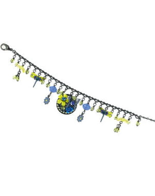 Petit bouquet de fleurs précieuses au cœur de l'hiver, papillons ciselés dans le métal et libellules colorées habillent ce beau bracelet de la marque Satellite. On ne peut qu'apprécier le mariage de couleurs jaune-bleu très chic, sans oublier les strass çà et là, pour couronner le tout.