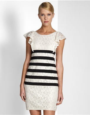 La tendance marinière continue de nous faire rêver cette saison. Et d'autant plus en version sophistiquée et des plus originales comme cette petite robe signée BCBG Max Azria. C'est donc tout naturellement que l'on jette notre dévolu sur cette tenue qui associe les célèbres rayures au crochet, avec la plus grande élégance. Collection printemps-été 2011