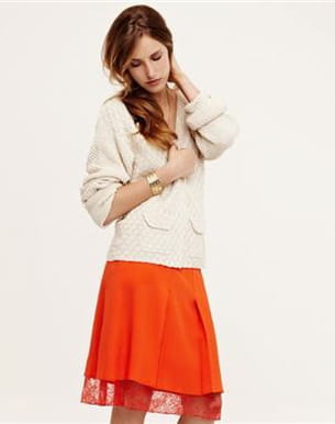 Avis à toutes les fashionistas qui ont d'ores et déjà commencé à remplir leur garde-robe de vêtements vitaminés pour le printemps. La marque Les Fées de Bengale crée une alerte orange avec cette jupe qui laisse un jupon en dentelle dépasser. Tout pour être chic et romantique en même temps ! Collection printemps-été 2011