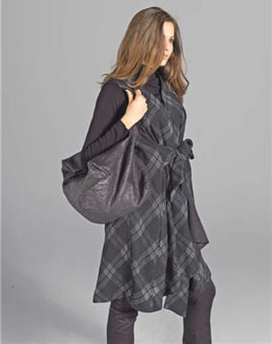 Pour continuer sur la lancée des carreaux, voici une version en noir et gris, plus passe-partout que le tartan habituel. Il vous suffira de nouer cette robe en laine bouillie d'un ravissant nœud à la taille et vous serez ainsi idéalement vêtue d'une robe à la fois chaude et confortable, et totalement dans l'air du temps.