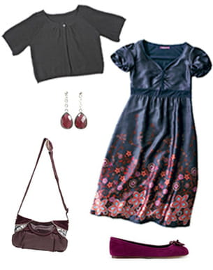 Ce look vous prouve qu'avoir des formes généreuses n'est absolument pas incompatible avec la féminité. Bien au contraire ! La preuve avec ce joli look d'hiver composé d'une robe fleurie et d'accessoires colorés, dans les tons prune, pile dans la tendance du moment.