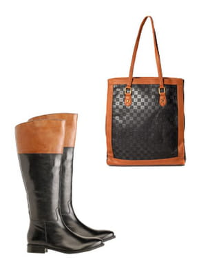 Sac bicolore de Pull & Bear et bottes cavalières de Tex © SdP Pull & Bear / Tex