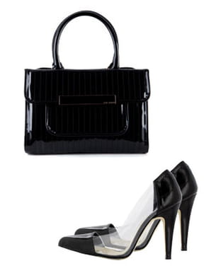 A la rédaction, on a vraiment craqué pour ces escarpins qui jouent la carte de la transparence. Mais comment assortir l'objet de notre affection ? En leur associant un beau sac verni qui ne manque pas de caractère !