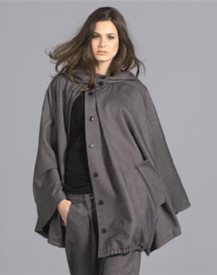Grande nouveauté de l'année en matière de pardessus : la cape. Très originale, elle se porte aussi très facilement avec de nombreuses tenues diverses et variées. En voici une version XXL grise signée Kookaï, en chevron sur draperie de laine. Chic, tendance et confortable, on l'adopte sans réfléchir cette saison !