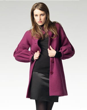 Voici un joli manteau fruité pour l'hiver. Beaucoup d'allure pour ce modèle signé Naf Naf avec une coupe cintrée et d'adorables manches féminines à souhait. 100 % laine, ce pardessus tout chaud et tout beau sera parfait pour égayer vos tenues avec élégance et originalité.