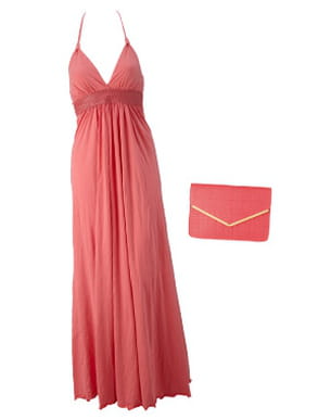 Le long est de mise cet été, le corail également : on adopte donc cette robe de Firetrap des plus tendance. Et pour ce qui est des accessoires, sandales ou compensées selon le style souhaité, et pochette obligée ! On se laissera facilement tenter par celle de New Look de la même couleur, so chic mais aussi à petit prix.