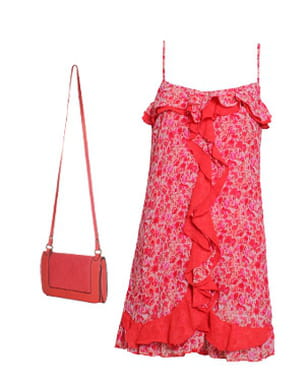 Tout plein de couleur et de fraîcheur, ce look est composé d'une adorable robe signée Deby Debo. On reste sous le charme de ses teintes pétillantes tout comme de ses adorables fleurs et volants. Côté accessoires, on craque pour la pochette Jazz de Sequoia dans son coloris sorbet, absolument parfait pour rappeler la tenue avec élégance. Le top !