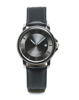 Un bracelet en cuir noir, un cadran plat et un fond grisé... Voici un modèle des plus classiques qui n'en oublie pas d'être chic. On apprécie aussi cette montre pour sa fonctionnalité avec ses aiguilles phosphorescentes, la mention de la date sur le côté et son option water resistant. Simple et élégante, on vote oui !
