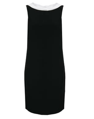 Librement inspirée de l'esprit Smoking, cette robe a de quoi ravir toutes les femmes. De forme droite adaptée à toutes les silhouettes, elle est d'apparence classique avec sa simple bordure blanche. En réalité, le décolleté se situe dans le dos, créant un bel effet de surprise.