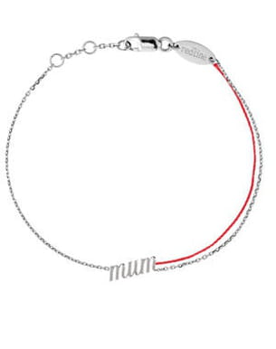 Redline habille le poignet des mamans en toute discrétion et avec beaucoup d'élégance. Ce bracelet travaillé avec la plus grande finesse dans un argent précieux témoigne d'un joli attachement avec l'inscription "mum". Et pour la petite touche de glamour, un fin ruban rouge est ajouté sur l'un des côtés du bijou. Collection printemps-été 2011