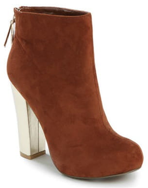 Bottines camel à talons dorés d'Etam
