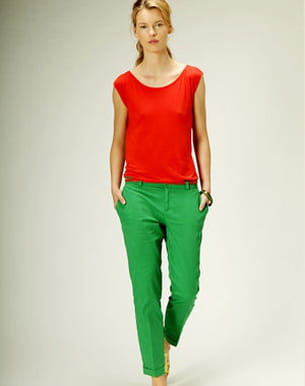 Mascotte des modeuses, valeur sûre des beaux jours, vedette incontestée de ce printemps-été : le pantalon 7/8ème en toile est un must-have, quelle que soit la couleur choisie ! Ici, Promod le décline dans un beau vert vif, très tendance pour un look color block, ou plus passe-partout mixé avec des pièces blanches. Collection printemps-été 2011