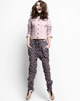 Pour Naf Naf, printemps rime avec fleurs et décontraction. Il n'est donc pas étonnant de découvrir un pantalon fluide au joli imprimé floral dans leur nouvelle collection. La ceinture est élastiquée pour plus de confort, la coupe est loose au niveau de l'entre-jambe et les jambes sont fuselées grâce aux bas froncés. Que demander de plus ? Collection printemps-été 2011