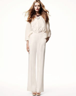 Pour H&M, le printemps est une saison de renouveau où le blanc est de rigueur. C'est donc tout naturellement que la marque suédoise propose son propre modèle de pantalon extra-large et taille haute en version immaculée. En total look blanc, vous serez sublime pour passer un été muy caliente ! Collection printemps-été 2011