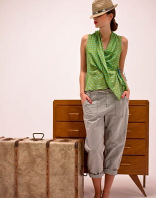 L'allure baroudeuse est l'un des looks tendance de la saison estivale. Avec son modèle à la coupe large pour une allure très décontractée et aux grandes poches très pratiques, One Step a tout bon ! Le petit détail chic : le pantalon est retroussé, pour un style dans l'air du temps. Collection printemps-été 2011