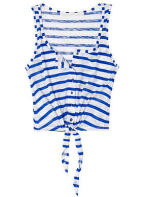 Retour aux années 1970 avec ce top signé Zara. La tendance du top court et à nouer sur le devant revient en force sur la planète mode. On arborera donc sans hésiter ce modèle rayé cet été avec un short en jean par exemple pour un look 100 % réussi.