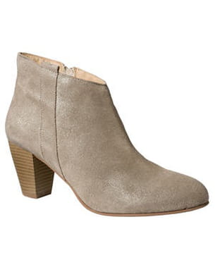 Faciles à enfiler, parfaites pour briller, ces bottines au beige métallisé nous seront très pratiques cet hiver. Avec leur talon lamellé de 5,5 centimètres, elles restent confortables pour nous suivre toute la journée. Pour les plus fans, elles sont aussi disponibles en beige uni, gris taupe, marron ou noir. Collection Automne-Hiver 2010-2011