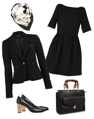Haut lieu fashion quand on ose, le bureau est l'environnement idéal pour la petite robe noire... A condition de bien l'accessoiriser ! On a misé sur le look de la parfaite working-girl avec un sac cartable, des escarpins chics et pas trop hauts, une veste de smoking et, très important, un foulard de dame à enrouler autour de son cou ou de son sac à main. L'accessoire indispensable pour égayer et féminiser le tout. Parée ainsi, même le big boss ne pourra rien vous refuser.