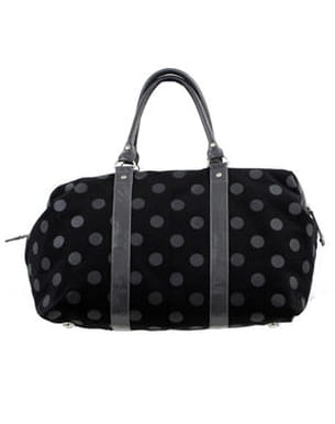 Rien de tel qu'un large sac shopping souple pour y ranger tout plein d'affaires la journée ou l'indispensable le temps d'un petit week-end. Notez que celui-ci, en plus d'être ultra pratique, est aussi terriblement mode avec ses motifs pois un peu partout ainsi que ses bandes et ses anses en cuir gris qui viennent rehausser le tout. Une valeur sûre.