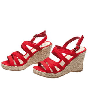 Tendance jusqu'au bout des doigts de pieds avec Tissaia et sa petite paire de compensées ! C'est la tendance phare de la saison estivale, on ne peut donc pas s'imaginer passer une journée à la mer sans en porter une paire. Les lanières se parent de rouge pour jouer la carte du total look et ne pas faire de fautes d'accords. Stylée, même les pieds dans le sable !
