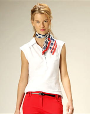 C'est le grand retour du polo, à l'image de ce modèle de Promod. On adopte donc le style sporty chic cet été avec ce top sans manches en jersey piqué, aussi disponible en vert et rose bonbon. Collection printemps-été 2011